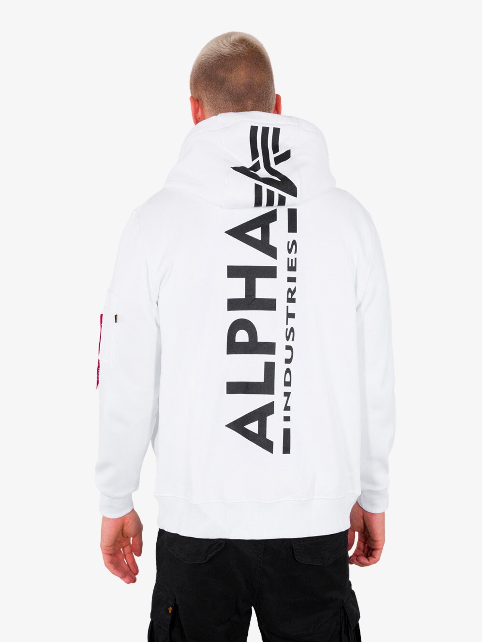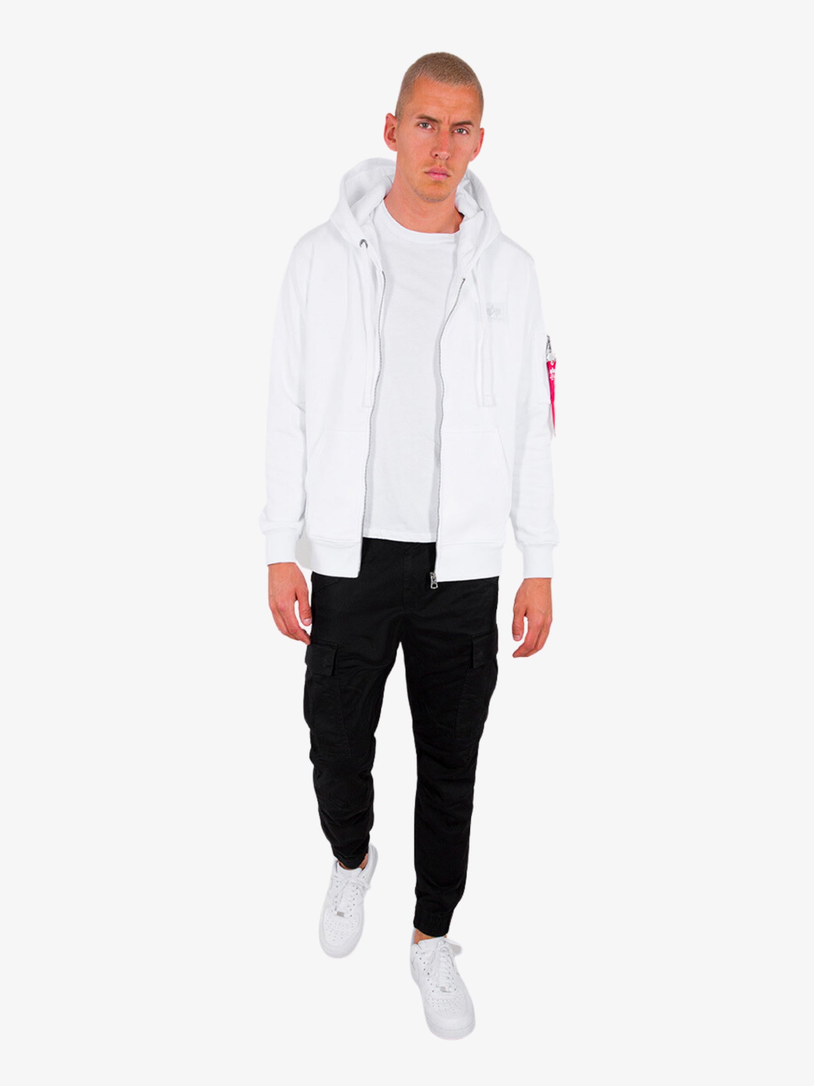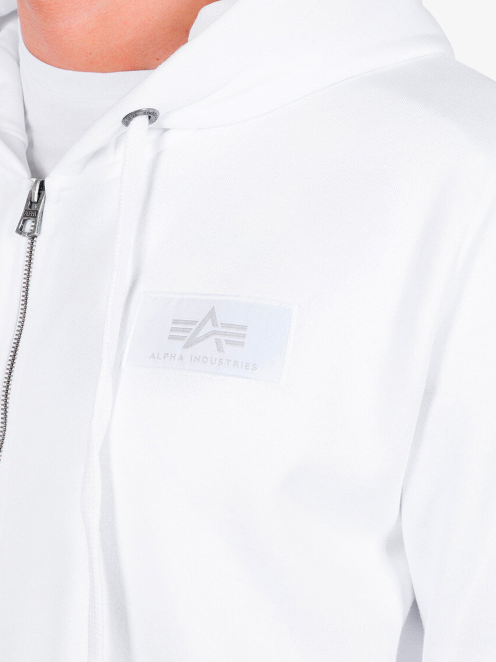 Sudadera con capucha y cremallera 12834209 hombre blanco espalda estampada