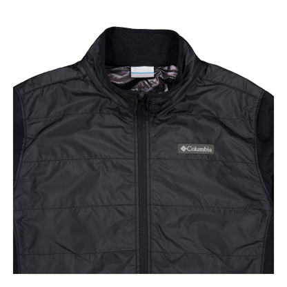 La construcción de vellón de cuello alto presenta la adición de aislamiento acolchado para mayor calidez en los días más fríos.
