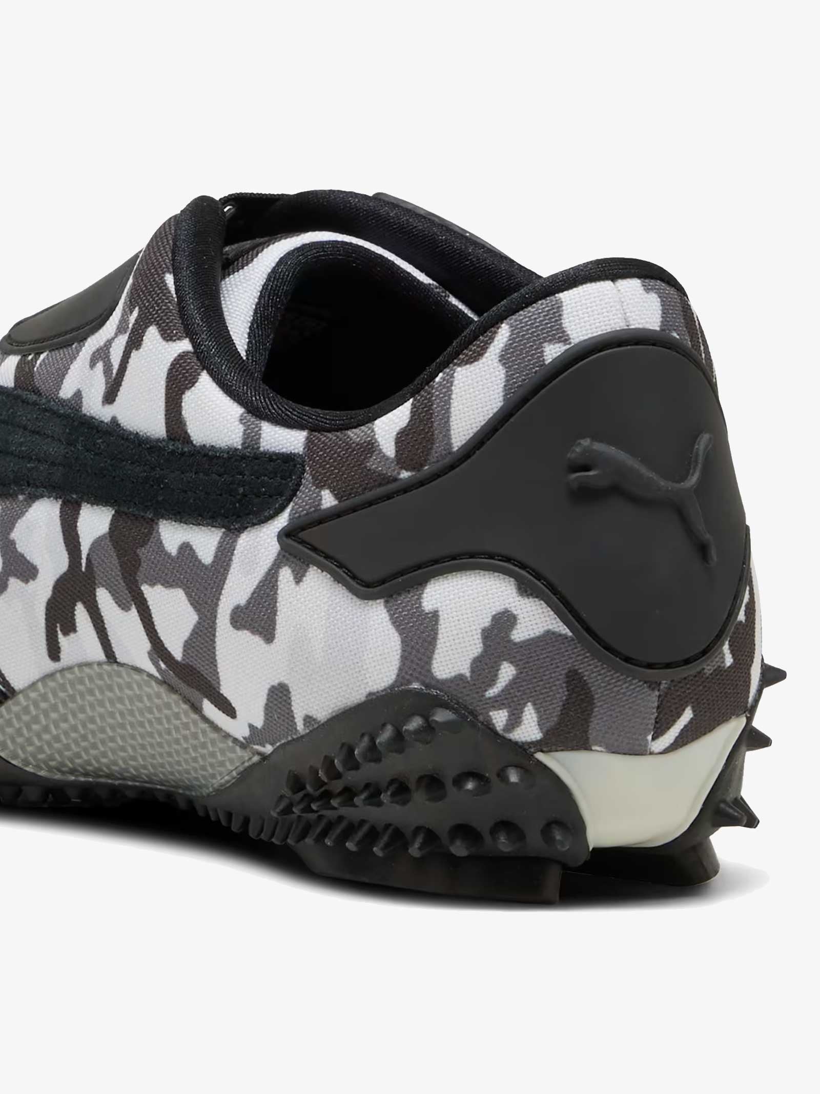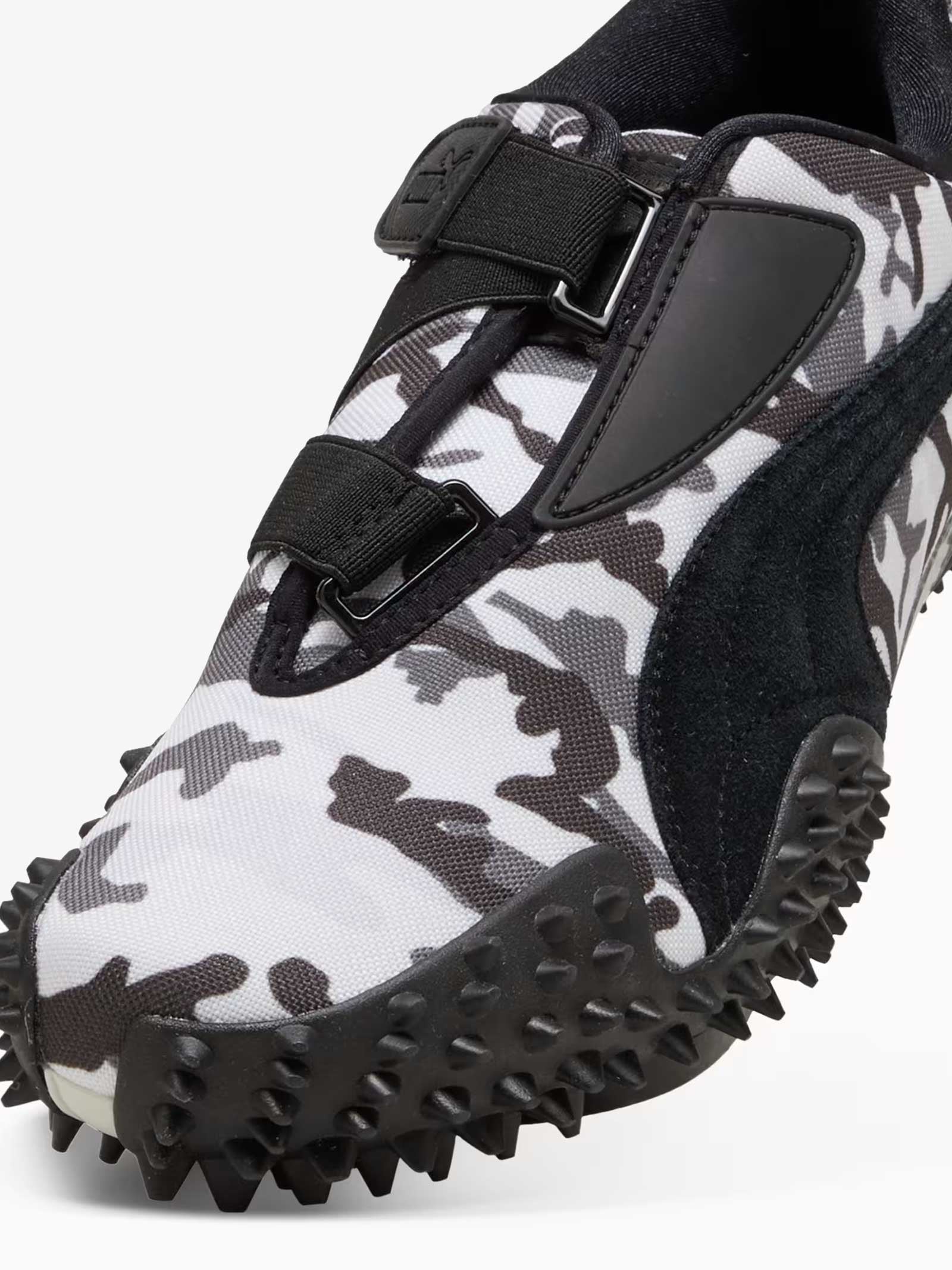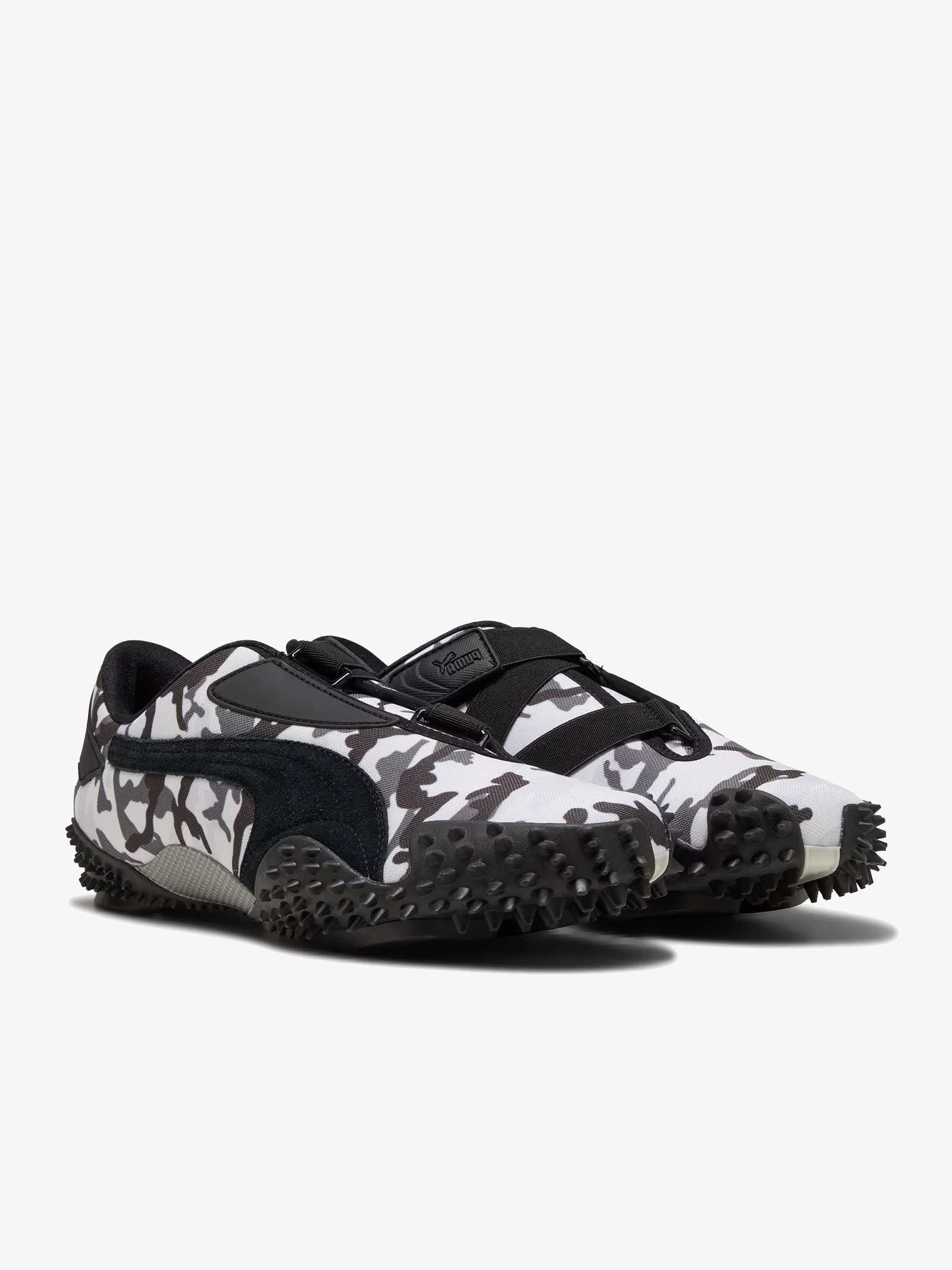 Detalles: Con colores de camuflaje, las Mostro presentan dos diseños de camuflaje: uno en tonos monocromáticos de blanco y negro y el otro en tonos terrosos de verde y marrón. El modelo Mostro se presentó por primera vez en 1999 y debe su nombre a la palabra italiana que significa "monstruo", en referencia al diseño híbrido, inspirado en las zapatillas de sprint con clavos de los años 60 y las zapatillas de surf de los 80.