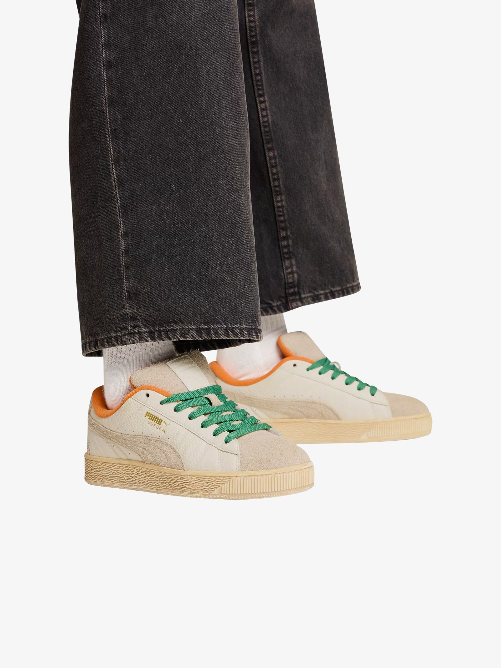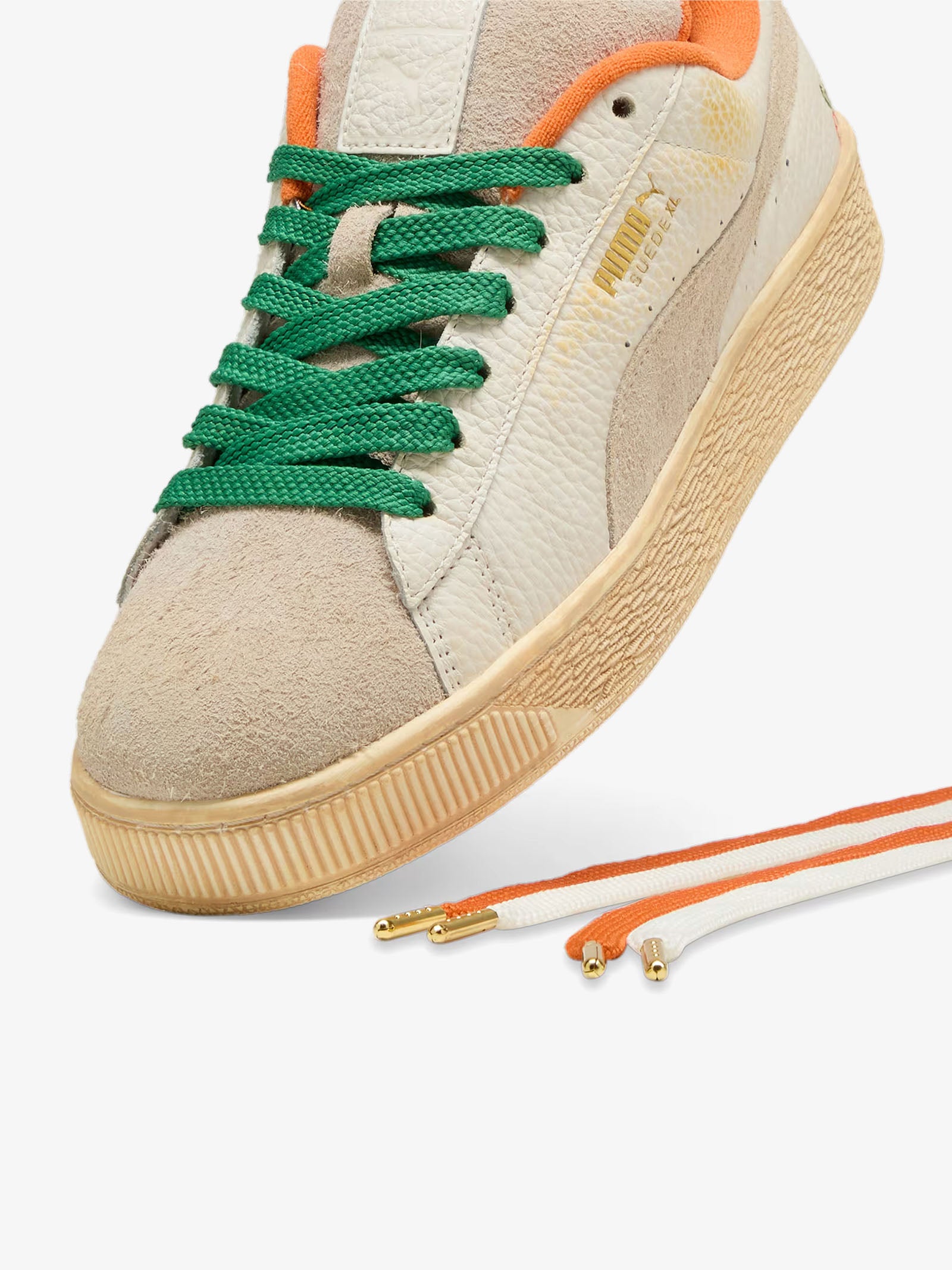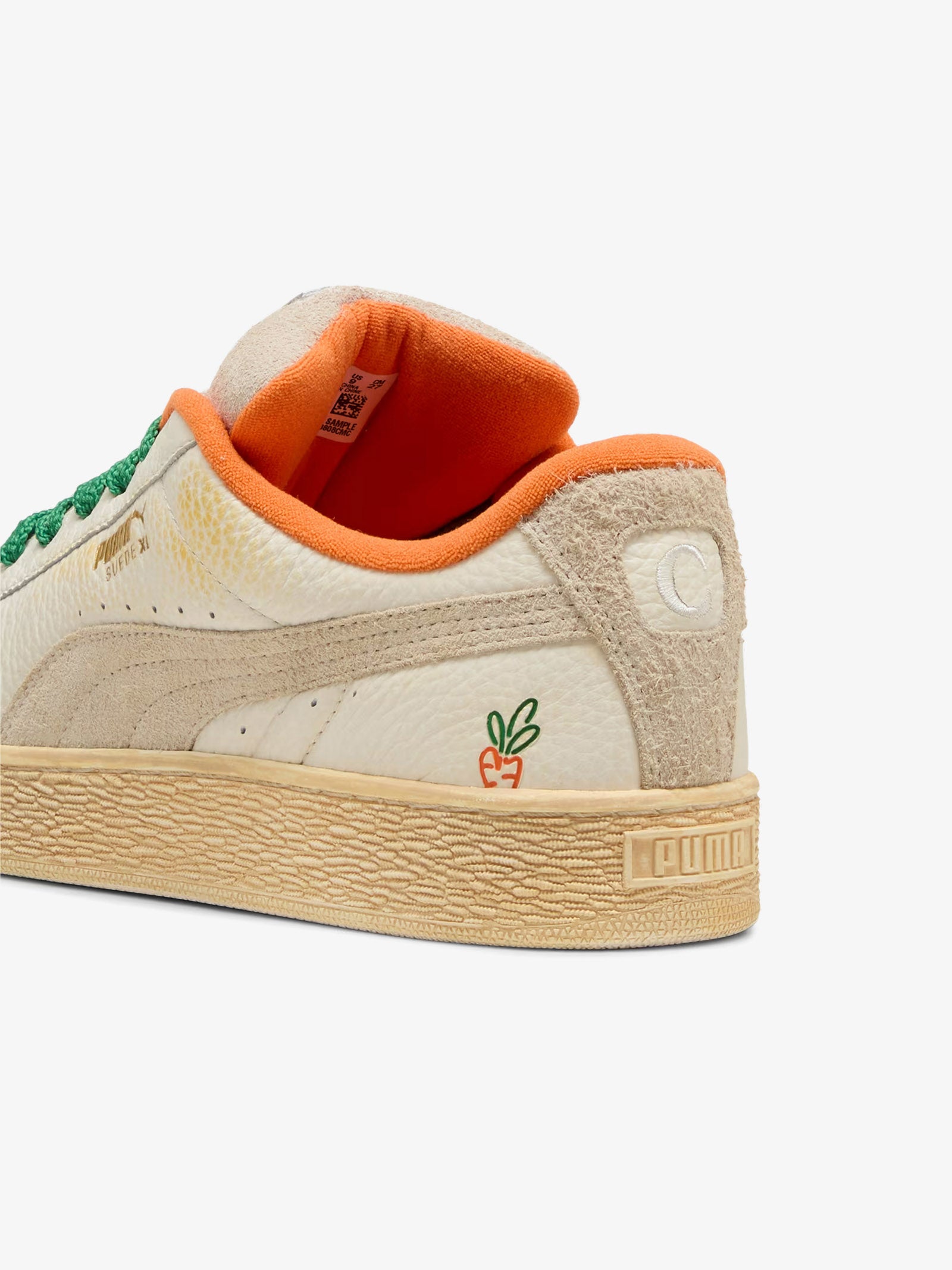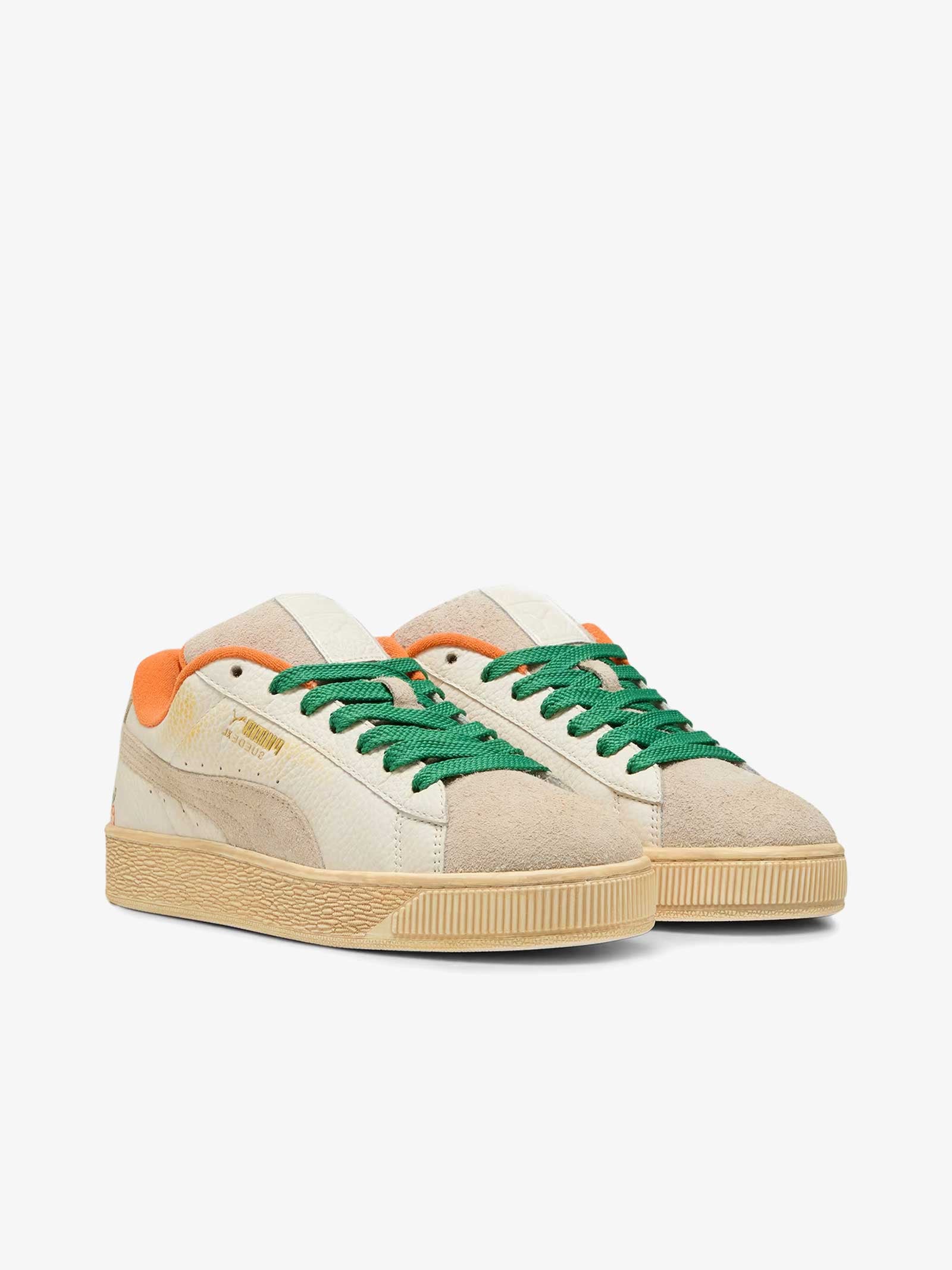 Detalles: Han colaborado con la marca de streetwear Carrots by Anwar para crear esta divertida colección de streetwear. Con gráficos retro Super PUMA, rayas atrevidas y frescos colores naranja y verde, cada prenda de la colección presenta el icónico logotipo Carrot escondido en un lugar diferente para una experiencia de uso divertida e interactiva. Esta versión de las Suede XL presenta el icónico ADN de las Suede, pero con un toque añadido gracias a un cuello y una lengüeta exageradamente acolchados y una suela más resistente.